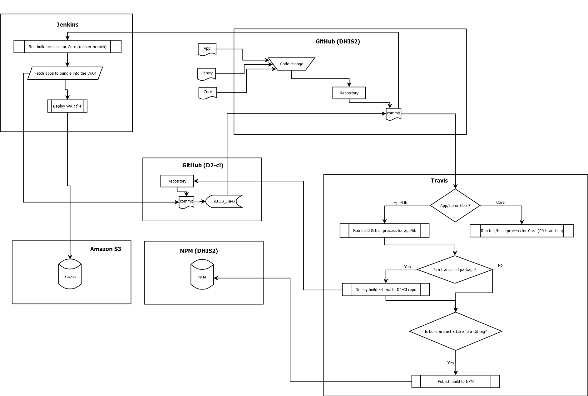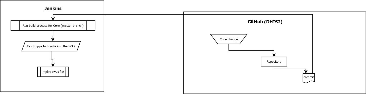 We use Jenkins to verify, build, and deploy DHIS2 core. Much like Travis does for the front-end apps/libs, it follows a recipe that describes the what to do, how to do it, and what environment to do it in.