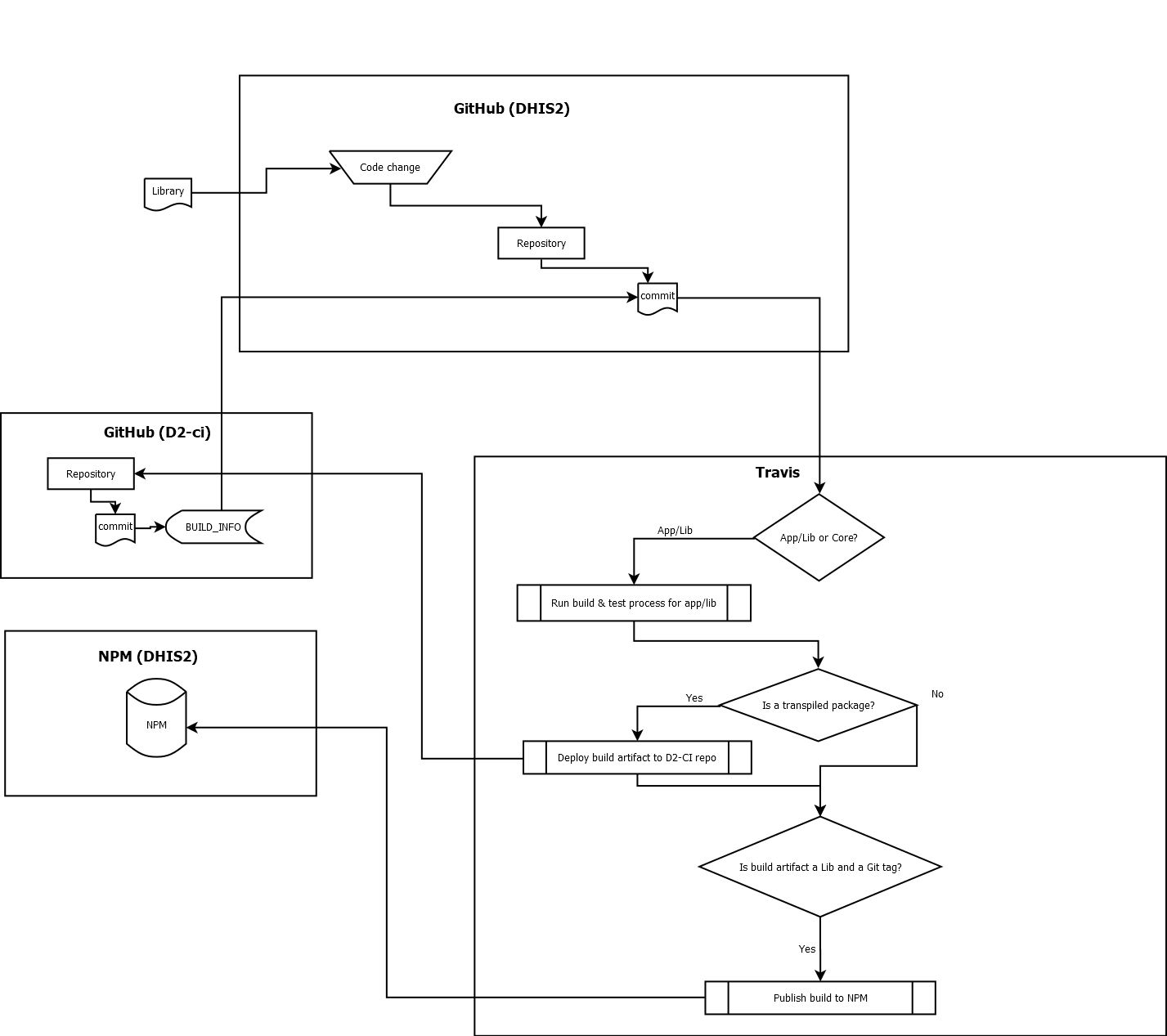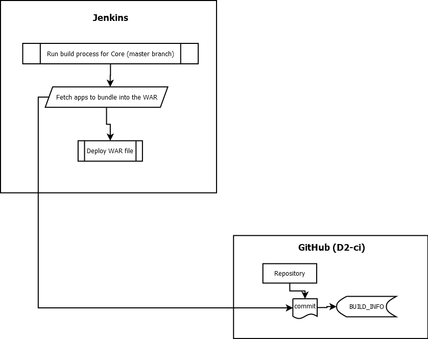 - A build of a library, stored and tracked on d2-ci, and if it was built from a tag, published to NPM