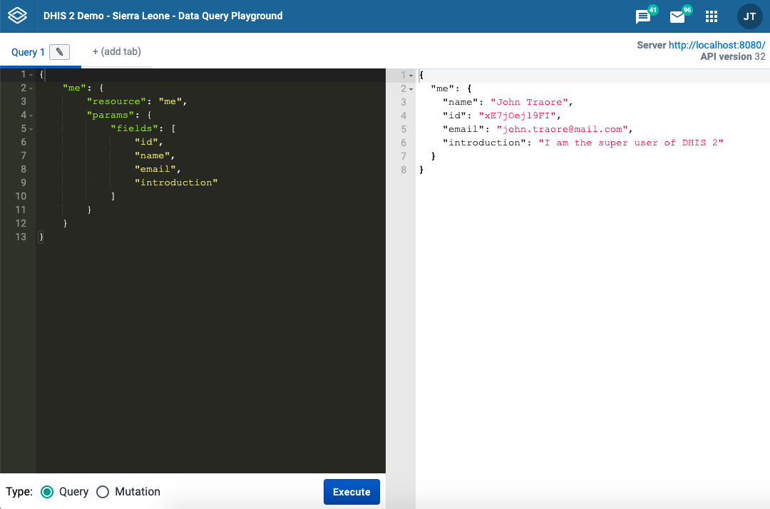 This short guide will show you how to use the Data Query Playground application for exploring the DHIS2 Web API and for testing data queries and mutations.