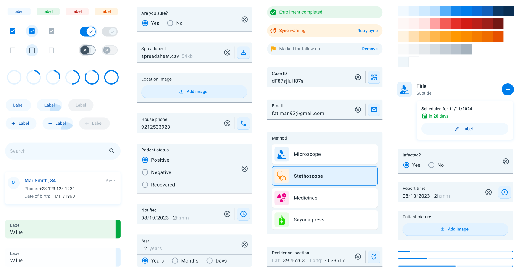 - Lists: Organized collections of items, and cards to display text, images, or interactive elements, ready for DHIS2 objects.